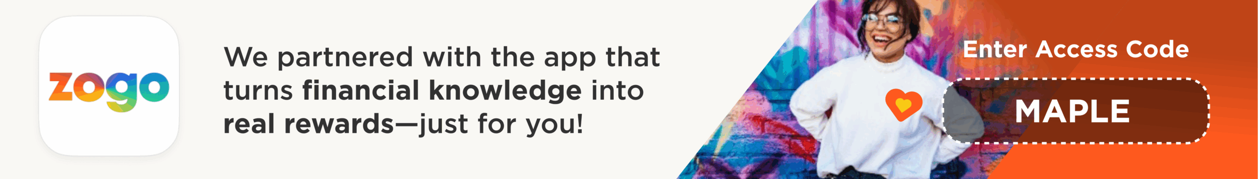 Ready to get started on your financial literacy journey? Download the app using the buttons below and use the access code: MAPLE