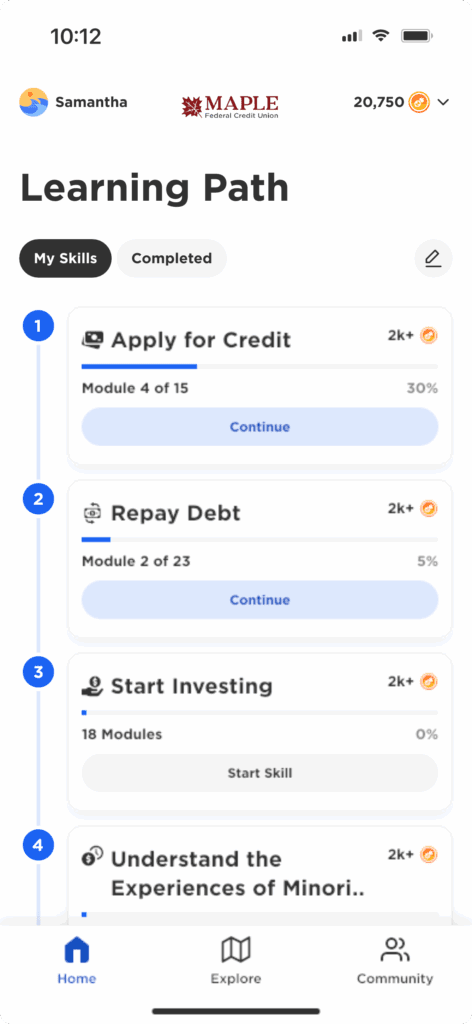 Simply choose your topic from the 22 available and complete the almost 400 modules. When you complete these bite-sized financial literacy lessons, you’ll get rewarded! You’ll rack up points that you can then exchange for gift cards.